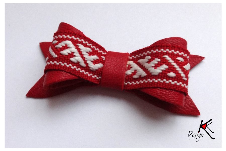 Matu sprādze sarkana no ādas, kas ir piestiprināta uz sarkanas sprādzes. Izmērs: 5.5×2,5cm, sarkanā krāsā.