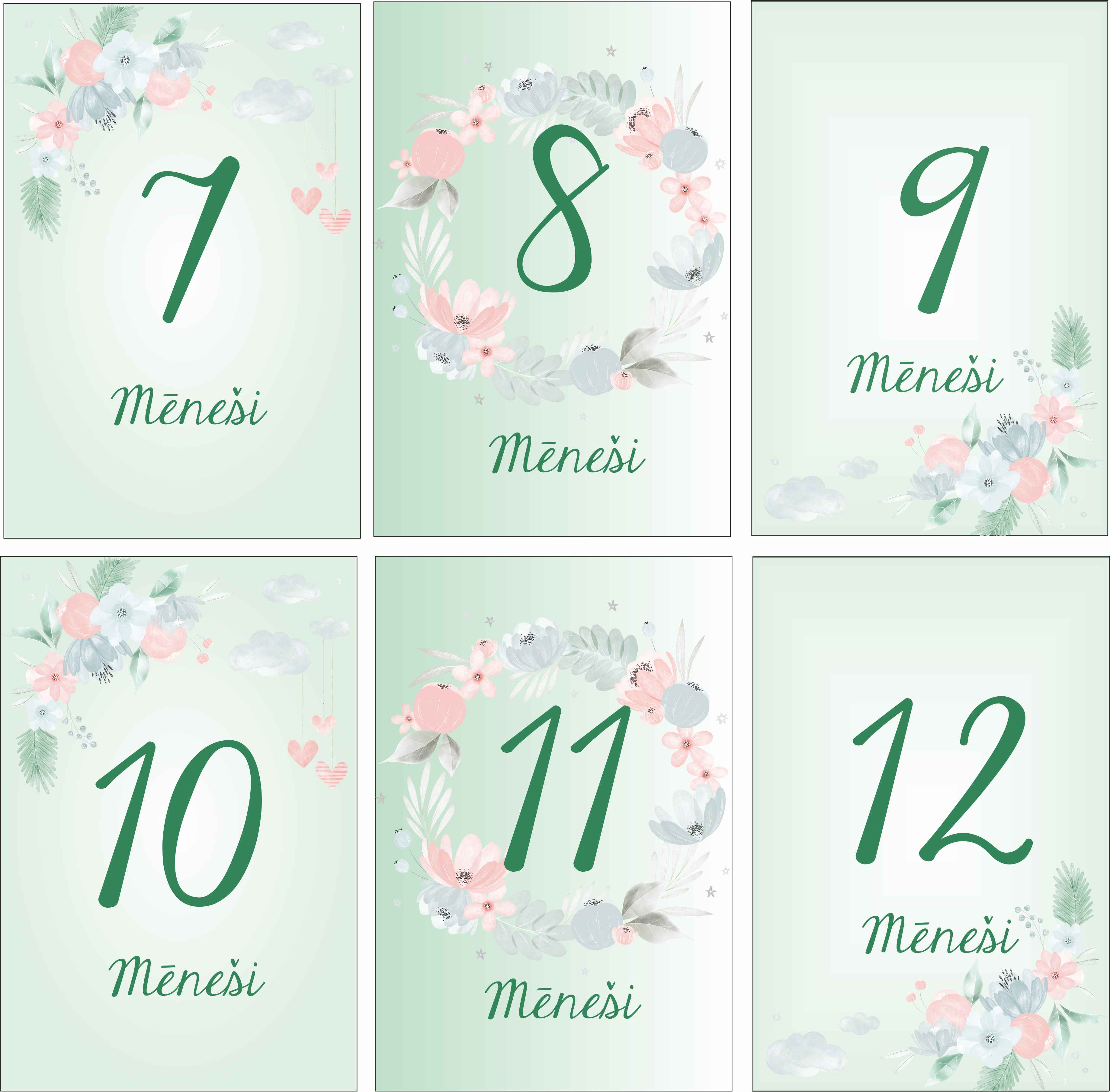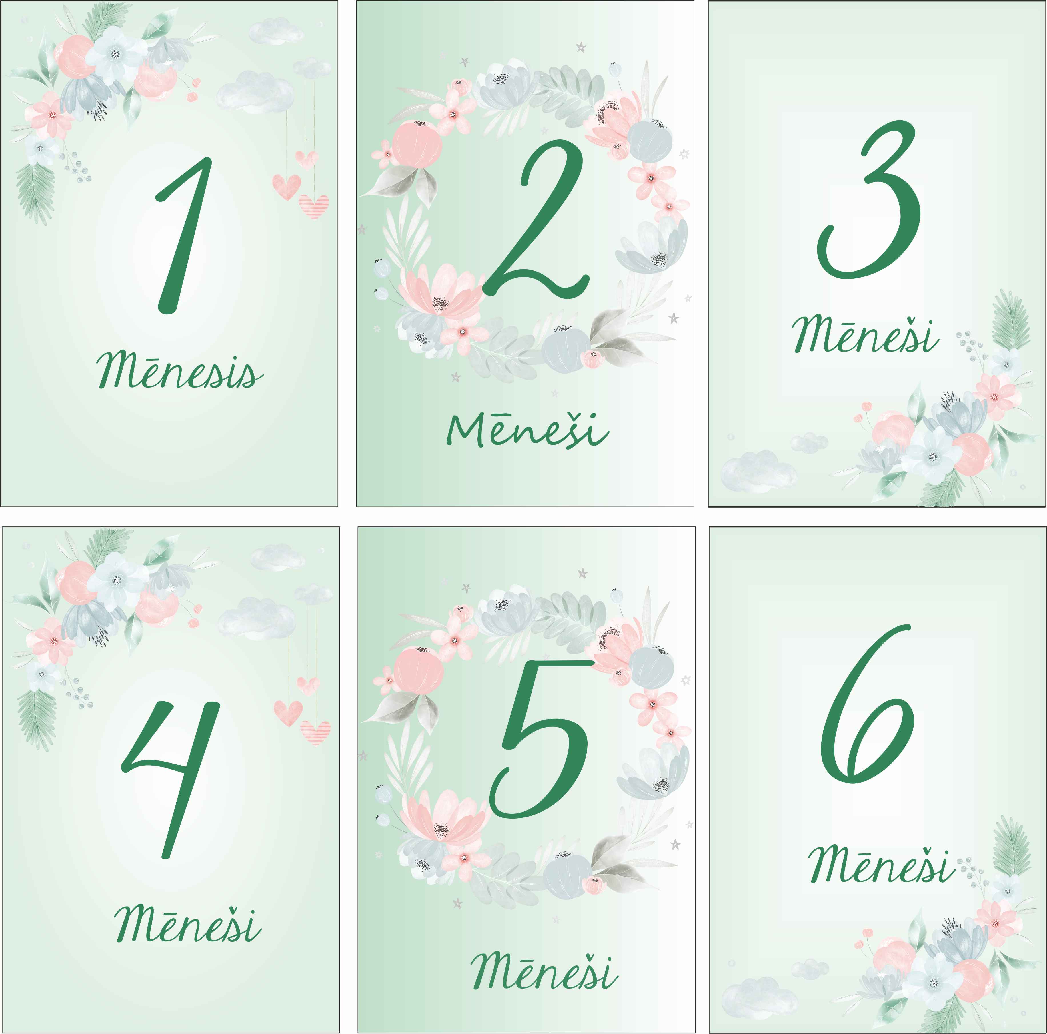 Mēneša kartiņas izmantojamas mazuļu foto sesijās katru mēnesi, kad mazulis paliek par vienu mēnesi vecāks. Bet arī var izmantot mazuli gaidot!